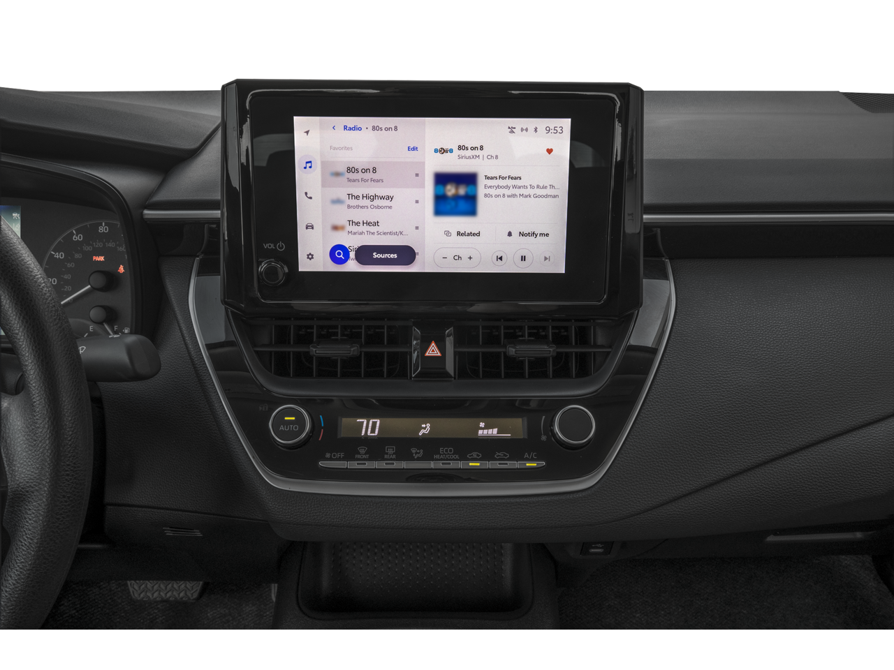 • 8-in. Toyota Audio Multimedia touchscreen with six speakers, wireless Apple CarPlay® 11& Android Autoâ„¢ 4compatibility, SiriusXM® 41 3-month trial subscription. See toyota.com/audio-multimedia for details.