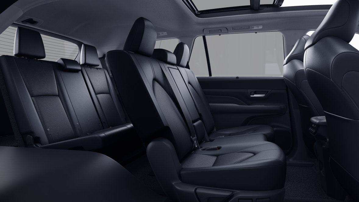 • 7-passenger seating with second-row fold-down captain's chairs and fold-down inboard armrests, adjustable headrests and two cup holders mounted on the floor; and 60/40 split, fold-down third-row seats with sliding headrests and recline function