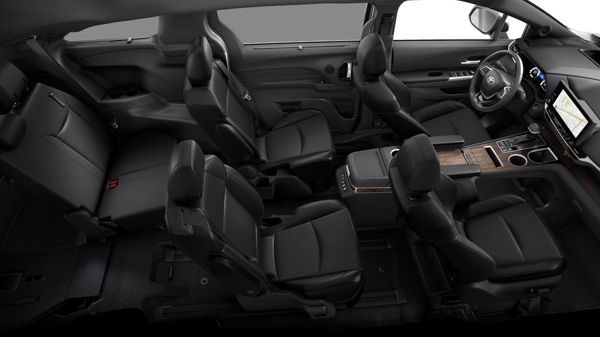 • 7-passenger seating with heated premium leather-trimmed second-row-seat captain's chairs with super-long-slide feature and ottomans 48 56sienna_ottomansienna_ottoman]