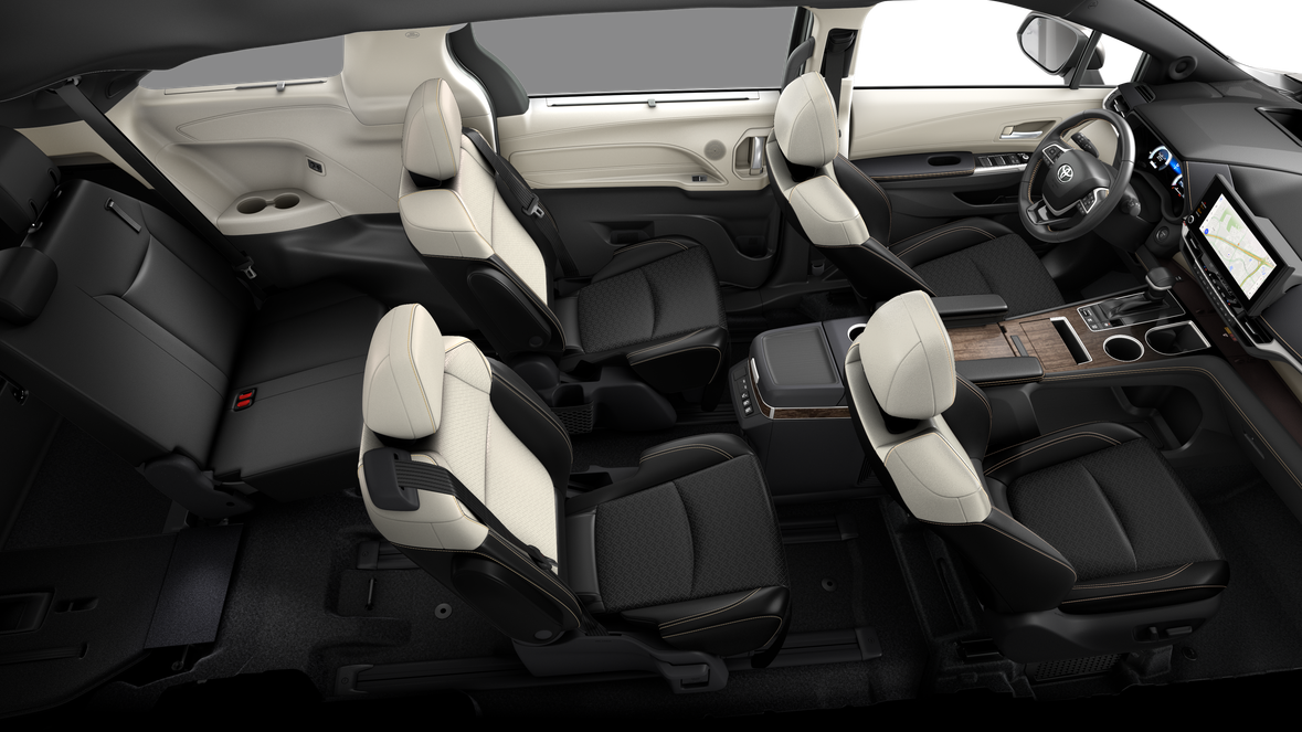 • 7-passenger seating with heated premium leather-trimmed second-row-seat captain's chairs with super-long-slide feature and ottomans 48 56sienna_ottomansienna_ottoman]