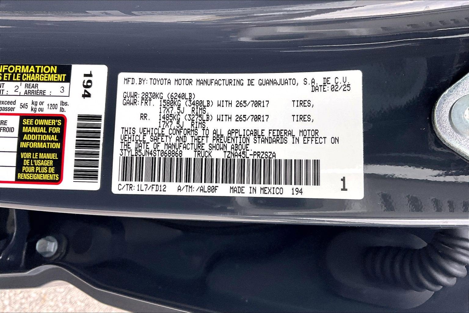 - Rear Tire Size: P265/70TR17